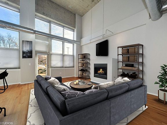 Rarely available and unique 2bd/2ba duplex-up concrete loft at Skytech Lofts! Located in the HOT West Loop neighborhood that lives like a townhome with its own PRIVATE ENTRANCE! Dramatic 25' high ceilings and east facing 16' windows bringing in tons of natural light. Open-concept chef's kitchen and breakfast bar with 42' maple cabinets, granite countertops, and SS appliances and a huge dining room space. Great for ENTERTAINING! Spacious living room with hardwood floors and gas fireplace! Lofted master bedroom and bathroom. Great closet space and in-unit laundry. INCREDIBLE location! Close to parks, top rated SKINNER elementary school, and dog parks (any size pet ok). Walking distance to restaurant row, coffee shops and steps from the Madison 20 and Ashland 9 CTA bus stop, and Green/Pink Ashland El stop and minutes from 290 and 90/94. This unit has one garage parking space and storage cage INCLUDED in the price.