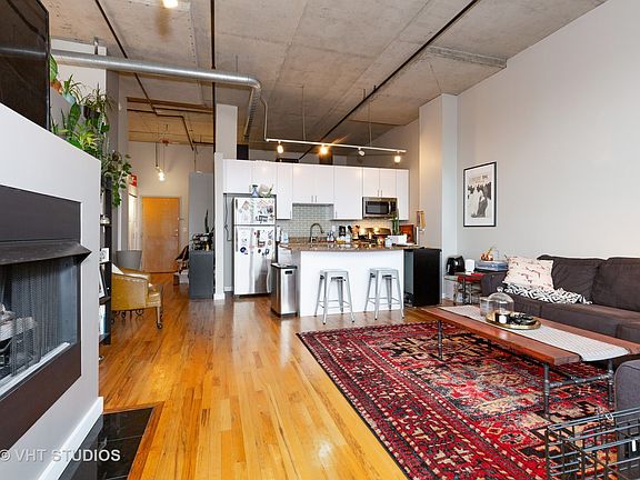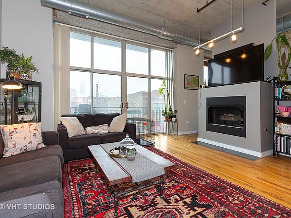 Hot West Loop neighborhood steps from Madison Street shops and restaurants, Fulton Market, Restaurant Row, Skinner Park, and in the highly ranked Skinner School District. Unit was just finished being rehabbed less than a year ago and it's beautiful. Updates include: New white kitchen cabinets, Stainless Steel appliances, white bathroom cabinets, all new bathroom tile and lighting, all new grey paint color throughout, all new doors, all new trim, new stone fireplace, new berber carpet, new lighting. The unit has 2 bedrooms and 1 bath and is very spacious. A nice LARGE balcony with room for bbq and furniture makes the outside perfect. The building has a secure garage parking spot and doorman. If you want a like new unit in a fantastic location then this is your place. FLR TO CEILING WINDOWS IN LIVING AREAS, 12'+ CEILINGS, PRIVATE EAST FACING BALCONY W/PARK & CITY VIEWS. CLOSE TO PUBLIC TRANS. GAR PARKING INCLUDED. IN UNIT LAUNDRY.