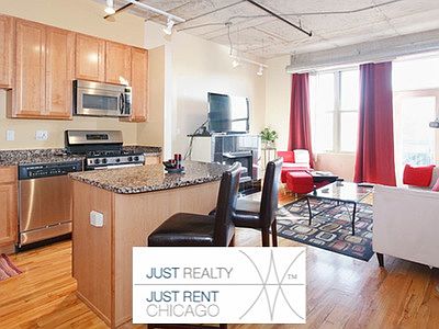 Available April 1st! Furnished 2 bed | 1 bath condo loft in the West Loop. Beautifully decorated open plan features 12 ceilings, hardwood floors, large island breakfast bar w/ modern bar stools compliment the granite cabinet tops and stainless steel appliances that include a dishwasher and built-in microwave. Large wide living great for entertaining w/ a flat screen TV. Private balcony with East (sun rise) city views and barbeque grill. In unit washer/dryer and basic cable is included. Popular doorman bldg near park, tennis, trans & highways. Garage parking space included.