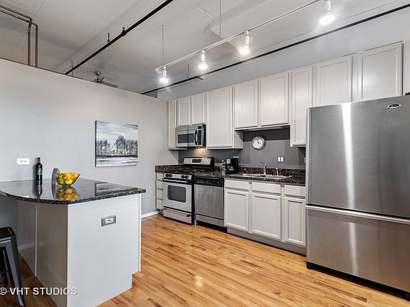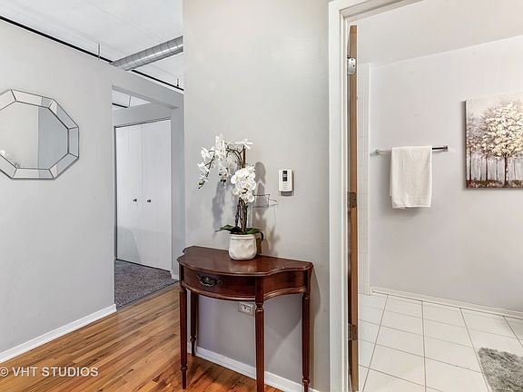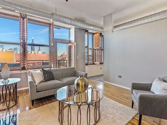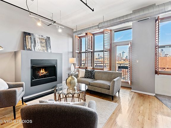 Recently updated 2-bedroom home with sweeping forever city skyline views from your bedroom, kitchen, living room, and balcony!!! This impeccably kept 2/2 bath loft home offers: Real hardwood floors living rooms/ newer carpet bedrooms, freshly painted, 10' ceilings, 42" light grey kitchen cabinets, grey-blue quartz countertops, stainless steel appliances, and kitchen peninsula with breakfast bar seating. New master bath (2017) with 5' shower, 12'X24' tiles. Ample organized closets and plantation shutters, gas fireplace, and private East facing balcony. Popular doorman building close to restaurants, shopping, dog parks, transportation, highways and new Michelle Obama $4M park across the street! Uncovered Garage Parking # P5-31(top level) included in price!