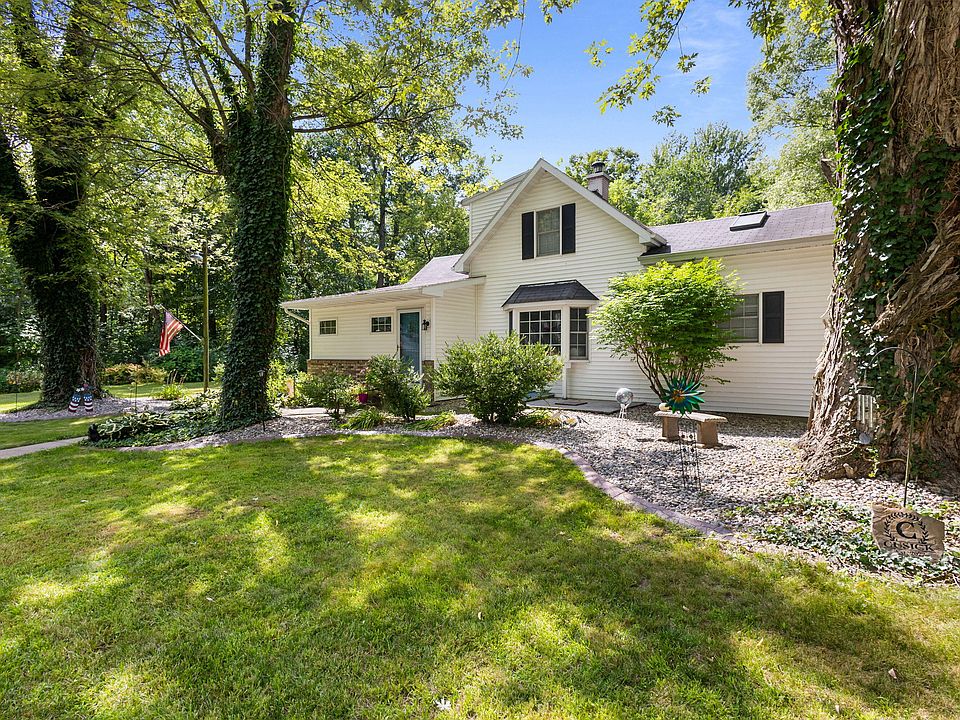 Welcome to your private retreat! Nestled on 1.5 wooded acres, this beautifully maintained 3-bedroom, 2-bath home offers both charm and functionality in a serene setting. A pine tree-lined driveway leads you back to the home, where you'll be greeted by a spacious foyer and meticulously landscaped grounds. The main floor features a large primary bedroom with vaulted ceilings and skylight, a remodeled full bathroom with stunning tilework, and a generously sized living room highlighted by a bay window. The kitchen includes a built-in oven, while the dining area opens to a backyard patio--perfect for relaxing and enjoying the natural surroundings. Upstairs, you'll find two additional bedrooms, one currently used as an office. The partially finished basement expands your living space with a cozy gas fireplace, built-in bar, and second kitchen--ideal for entertaining or potential secondary living. A three-quarter bath, storage, and utility rooms complete the lower level. Outdoor amenities include a long driveway, detached garage for storage, and a massive 3+ car pole barn. With a gas furnace AND an efficient wood-burning furnace, this home is as practical as it is inviting. Conveniently located near Highway 421 and the toll road, this property combines easy access with peaceful seclusion--a true nature lover's paradise.