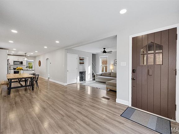 Shrewsbury charmer! You are home. Meticulously maintained brick home in the award-winning Webster Groves school district. This exceptional three-bedroom two full bath home was completely renovated in 2020. The home is conveniently equipped with an EV charging station. A charming covered front porch welcomes you home. Highly sought after open floor plan. Beautiful LVP flooring though out the entire first floor. Spacious living room with cozy gas fireplace and classic stain glass windows. The entire home is bathed in natural light. The large dining area is perfect for meals w friends or family. Completely updated chef's kitchen w huge center island stainless appliances, custom cabinetry and hard surface counters are a must see! The inviting sunroom is perfect for morning coffee or to relax after work. The generous main floor bedroom is currently being used as an office. A tastefully updated full bath completes the first floor. Spacious primary bedroom suite, loft area, another generous bedroom and updated bath complete the second floor. Huge clean unfinished basement w full size garage door opens to the private fully fenced back yard. Additional large storage area under the sunroom. Large rear asphalt area provides wonderful play area, patio space and could be used for additional parking. Shrewsbury occupancy inspections is complete. Conveniently located near shopping, restaurants, Webster University, Walk to multiple parks, City center complex and so much more!