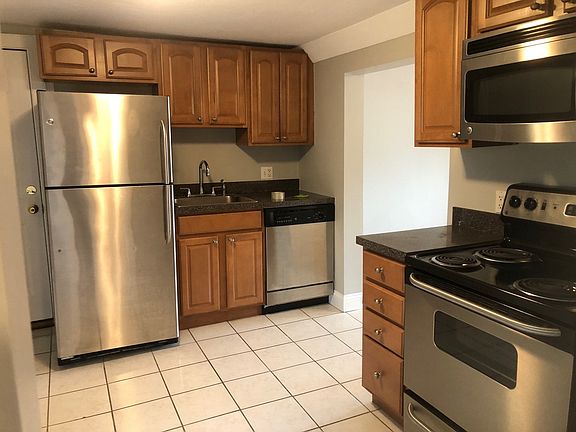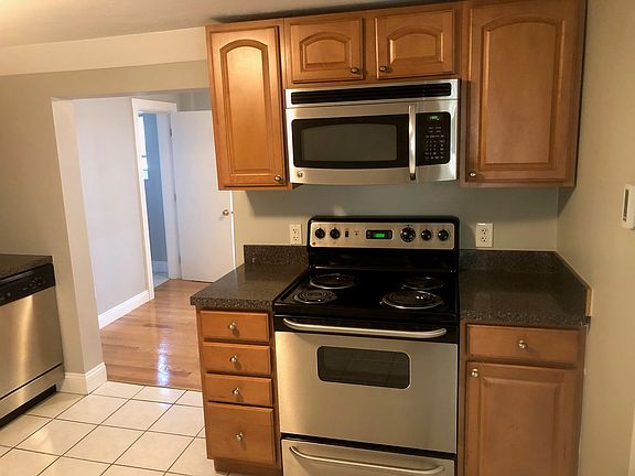 Updated 2 bedroom 1 bath apartment in Woburn center. Hardwood floors in living room and bedrooms, tiled kitchen floor, kitchen is fully equipped with stainless steel appliances - stove, refrigerator, microwave and dishwasher, on-site laundry, adjacent to municipal parking lot, on public transportation, electric heat absolutely no pets or smoking allowed Available June 1 Tenant pays for Electricity ( including electric heat ) and Hot Water (electric HWT) 1 year lease First month, security deposit and 1/2 month realtor fee to move in MUST have good credit and verifiable income