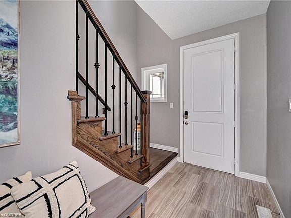 Welcome to 6 Sandybay Avenue - an immaculate double car garage home located in the highly sought after Lackner Woods area! Located minutes from the 401 and close to shopping, schools, walking trails, the Grand River, dining and recreation. This home has quality finishes, a carpet free main floor with 9-ft ceilings and a modern open concept layout. The kitchen includes a beautiful island, soft-close shaker style cabinetry, marble backsplash, granite counter tops, stainless steel appliances, and trendy ceramic flooring. The great room boasts beautiful maple hardwood flooring and over sized windows allowing for natural light to brighten this open space. A hardwood staircase with wrought iron spindles leads to the second level with 3 bedrooms, a loft area and skylight with lots of natural light. The master bedroom features a custom built walk-in closet and a luxury ensuite that includes a double vanity and elegant glass rainfall shower!
