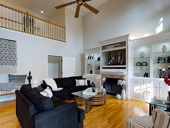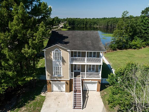WATERFRONT! Three stories,4 BRS, 3 BAs, 2 half BAs, 3 balconies & plantation shutters.Beautiful w/upgrades.Real hdwd floors on the main level in the GRTRM, dining, kitchen & master suite.Enter from the front balcony into the GRTRM w/two story ceiling & bookcase FP.Dining room & kitchen open with a breakfast bar, granite, stainless double wall ovens, cook top, micro & french door ref surrounded by white cabinetry.Master with french doors to private balcony overlooking pond, bath w/granite vanity w/dual sinks, jacuzzi tub,tile shower, toilet room & great closet.Upper level looks down to the GRTRM w/ 3BRs, jack & jill bath & a hall bath w/granite, large utility room & front balcony.Bottom level has family room w/1/2 bath, a oversized 2 car garage, shop & storage. Seller is a licensed agent