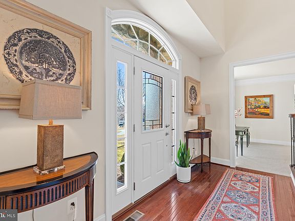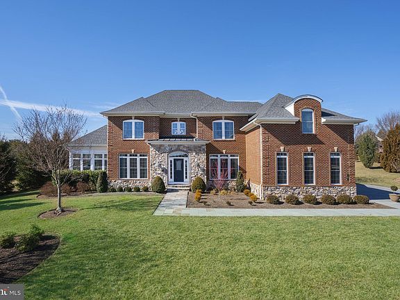 Built to perfection in 2014, this beautiful home in Scaleby Farm boasts more than $340,000 in upgrades and custom features from the base home model. Situated on a 2.2 acre lot and featuring approximately 7,700 sf of finished living space, this stunning property offers everything that appeals to discerning buyers. The curb appeal is evident by the use of brick and stone for the exterior and the landscaping designed by Robinson Anderson Summers Inc, a firm that has done landscaping for US Botanical Gardens and Nemours Mansions and Gardens. Quality and craftsmanship prevail in the architectural features, fine materials and design elements used throughout the home. Upon entering, one immediately appreciates the thoughtfully designed and appointed living spaces, creating a timeless and inviting home. The foyer features gleaming hardwood floors, a grand two-story staircase crafted of solid oak and metal balusters. The foyer is flanked by the dining room and living room, all with deep crown molding and warm, neutral paint. The living room leads to the magnificent conservatory with its walls of windows. The abundance of natural sunlight and views of the grounds create a lovely room for relaxing and entertaining. It is also the perfect space to nurture and enjoy plants and flowers. Once back to the two-story foyer, you notice the clear sight line to the Great Room and outdoors. The Great Room is truly the heart of the home. Coffered ceiling, gas fireplace with floor to ceiling stone veneer and large windows, create a light-filled space that is both elegant and comfortable, scaled for intimacy and warmth. The Great Room is open to the kitchen and breakfast room.The expansive kitchen also features a coffered ceiling, lending a cohesive design and flow. Stunning 42” cabinetry, Viking appliances, including a six-burner built in cooktop, large center island and granite counters are only a few of the custom features. There is a morning room/breakfast room for casual dining and enjoying morning coffee. The kitchen has access to the lovely stone patio with gas fire pit and built-in grille, providing beautiful outdoor living space. The first level also has a handsome study, featuring built-in cherry bookcases. A laundry room and powder room round out this first floor living area. A third staircase from the kitchen provides access to the second floor. The large primary bedroom is truly an oasis. A tray ceiling adds interest and sophistication to the space and the seating area and balcony lend cozy spaces to relax. One will feel pampered in the en-suite spa-like bath. There is a large, tiled shower with full glass enclosure, soaking tub with jets and double vanities with expansive counter space. Walk-in closets allow for plenty of storage. Three additional bedrooms, two additional bathrooms, all with ample closet space, complete the second level. The basement has over 2,000 sf of finished living space. It is divided into four distinct rooms - a recreation room, a custom designed theatre room, a fitness room, and home office/bonus room. The lower level also includes a finished full bathroom. Two additional unfinished storage areas leave plenty of room for storage. This home energy certified and has a whole house generator should it be necessary. Impeccably maintained and lovingly cared-for by the original owners, one must see this home to truly appreciate all that it has to offer.
