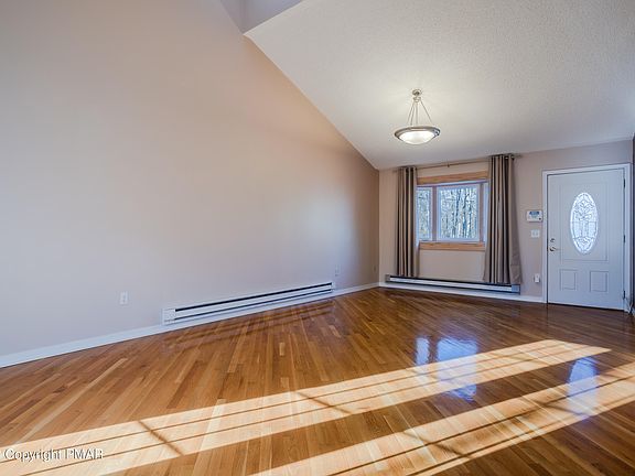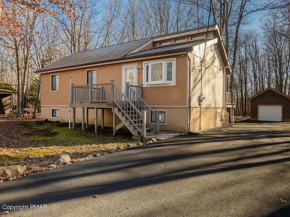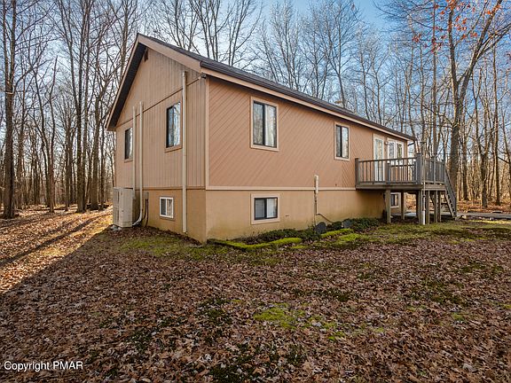 This Contemporary Ranch has been tastefully updated for your Perfect getaway or full time Residence! Absolutely Charming and the perfect location, tucked away in an Amenity Filled Community. This home features 3 bedrooms, 2 full baths and a kitchen with new appliances! The open floor plan living area has beautiful hardwood flooring and all freshly painted with a new Bow window! The large lower level family room has tile flooring, laundry area and a beautiful full bathroom with Sauna. New water Heater and Mini Split HVAC! The large deck off the Living room offers plenty of space to kick back after a long day! New paved driveway and a spacious garage! Minutes to Jack Frost and Big Boulder for winter skiing and snow tubing! Close to all Pocono attractions! This property will not disappoint!
