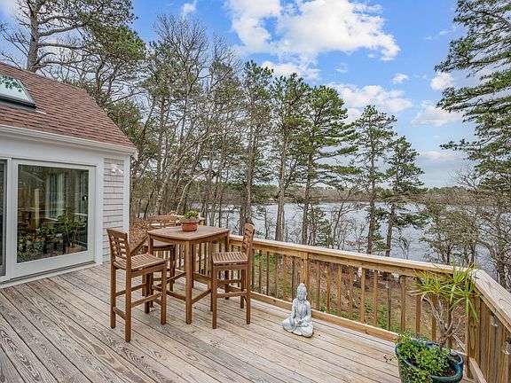 Welcome to a true waterfront gem with almost 200' of frontage on beautiful Slough Pond! The new south-facing addition includes a large kitchen, soapstone counters, banks of sunlit windows, skylights and wonderful views. This special property exudes Cape Cod charm with glistening water views, colorful sunsets, tiered gardens, perennials, and new deck overlooking the private back yard. Enjoy swimming, kayaking, paddling and fishing from your back yard in one of the cleanest ponds in Brewster! This 3-bdrm home has had many updates over the past years like the gorgeous new dining-sun room addition, remodeled kitchen and bath, new roof, most windows, deck, mini-split ac, and more. Lower level is walk-out with a bright, finished space and the property includes a partially cleared area ready for further expansion of the house or perfect for a garage!