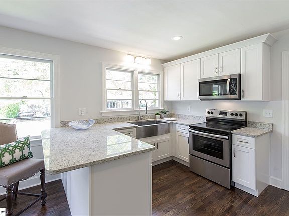 Fantastic Parkins Mill Location! Close to Everything! Minutes to Haywood Mall, Downtown Greenville, Greenville Tech, ICAR and Swamp Rabbit. Charming Brick Bungalow that is MOVE IN READY! All NEW stainless steel appliances, farmhouse sink, and washer/dryer. Gorgeous White Kitchen cabinets and granite counter tops! Also NEW: Architectural Roof, HVAC, hot water heater, electrical and plumbing. Beautifully refinished Hardwood floors throughout. New tiled bathroom. New sink, toilet, mirror and lighting. Large new outdoor deck that is great for grilling and outdoor entertaining. Large fenced backyard! WOW!!