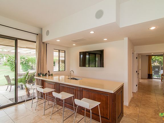 Looking for an incredible fairway view home in a premier location? Look no more. This Gorgeous, contemporary Doral Floorpan impresses instantly! Once inside the stunning entry doors, you are greeted by the spacious living area that overlooks the 11th fairway of The Springs Golf Course. The gourmet kitchen features beautiful granite countertops and warm cabinetry. This home has wonderful outdoor living space with views of the South mountains, double fairway, lake and foothills. This is truly a home you will want to share with friends! The two large master suites feature beautiful walk-in closets with well appointed en-suite bathrooms. The Den doubles as a 4th bedroom for larger families. This immaculate home does not dissapoint and is very easy to show!The Springs" in Rancho Mirage is 24 hours guard gated & HOA fee includes: exterior painting, earthquake insurance, roof & landscape maintenance & 24 hr guard gate, state of the art fitness center & social membership to The Springs CC.