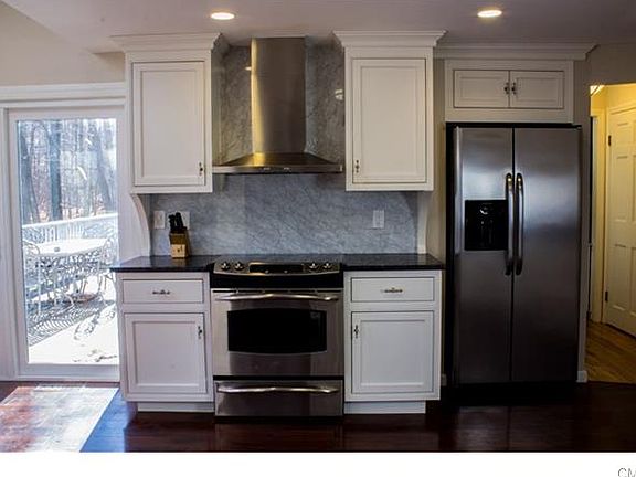Welcome home to this stunning Five bedroom Colonial. Gleaming hardwood floors greet you as you enter. Large dining room with fireplace that adjoins the comfortable den and fabulous new kitchen. Honed granite, stainless appliances, sunny eat-in area and sliders out to a generous deck - perfect for entertaining. Renovated bath, refinished hardwood floors, new windows through out, new driveway w/ Belgium Block apron and trim and so much more. Wonderful cul de sac neighborhood. Close to town, shopping and schools. Come and see Ridgefield's best buy!!