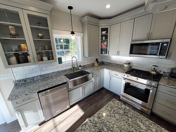 Custom 2022 built 3 or 4 BR Home with 3 full baths, garage and located on quiet Cul de Sac within easy walk of downtown Orono yet out of the hustle and bustle. This home is packed with custom features like custom vinyl shake siding, composite decking, gourmet cooks kitchen with high end Kitchenaid appliance package, farmers sink, slow close cabinets, wine fridge, and solid granite countertops. Open floor plan has expansive cathedral ceiling in Kitchen, Dining and living room area. Dinging has slider to oversized composite deck overlooking nice backyard great for entertaining or just enjoying your mourning coffee. Master suite has its own baths with double sink and tub with tile surround. Lower level has bonus office or family room plus bedroom with its own full bath that has step in shower. Attached heated garage is all sheet rocked and has high efficiency gas furnace to go along with the super insulation of a new home so it's cheap to heat too. Lawn is in with nice granite beds, paved driveway in place too and lets not forget property borders Orono land trust trail system which owner put in path to connect right to this backyard! Don't settle for old and hard to heat house buy this new gem of a home that is inexpensive for utilities and maint free!