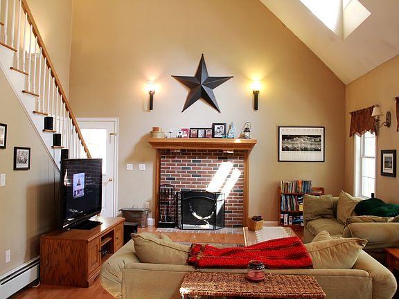 This 2005 Cape is not only ATTRACTIVE from the exterior with its WRAP AROUND PORCH and FRONT DORMERS but wait until you step inside! WELL CARED FOR it SHINES as you walk thru the side entry into the OPEN CONCEPT living room dining and kitchen area with tall CATHEDRAL CEILINGS that give it a GREAT OPEN FEEL. The handsome FIREPLACE w/ WOOD STOVE keeps you cozy! HARDWOOD FLOORS cover this area of the home. Well- appointed kitchen w/ all STAINLESS appliances and FRESHLY PAINTED WALLS gives it a CLEAN NEW look. FIRST FLOOR MASTER BEDROOM w/ fresh NEW CARPET and WALK IN CLOSET attaches to a LARGE 3/4 BATH w/ LAUNDRY w/ shared access off the kitchen for convenience. BEAUTIFUL OPEN STAIRCASE w/ open 2nd floor landing, enters you into 2 more bedrooms w/ NEW CARPET and a FULL BATH. Large NEWLY RENOVATED FAMILY ROOM with WOOD STOVE on the LOWER LEVEL w/ FULL WINDOWS and WALK OUT will surely be that EXTRA SPACE you will spend lots of time in. 3 SOURCES OF HEAT with FHW propane boiler, 2 efficient wood stoves and 3 mini- splits with Hyper heat and A/C. 2 CAR DETACHED GARAGE with ROOM ABOVE TO EXPAND.Tilton is at the Gateway of the Highly sought after LAKES REGION of NH. Minutes to the 93 Corridor at Exit 20 GREAT FOR THOSE COMMUTING. Loads of shopping choices and restaurants nearby. An abundant supply of outdoor fun from skiing, a world class bike park and soon coming water park, walking trails and of coarse swimming boating and fishing. Delayed showings to begin Sat 1/30