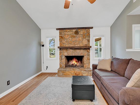 - Fireplace, Split Bedrooms, Window Treatments, Breakfast Bar, Bedroom on Main Level, Entrance Foyer, Kitchen Island, Workshop