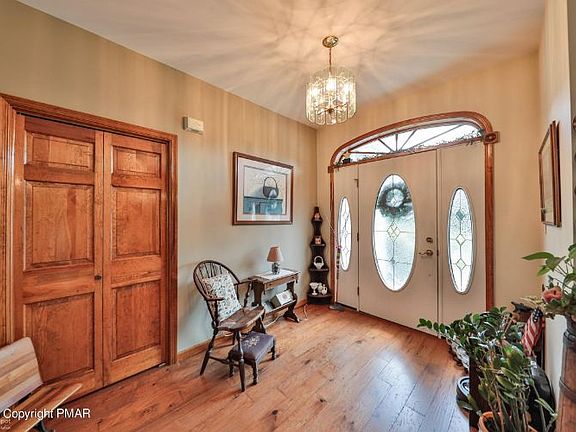 Located on a serene culdesac street, this custom built sprawling ranch home offers 1st floor living at its finest. The decorative paver patio welcomes you as you enter into this open concept 3 BR 2 1 2 bath beauty. Magnificent hardwood floors, cathedral ceilings, and stone fireplace decorate An inviting living room and dining room, and French doors exit to the deck out back. The well appointed kitchen offers plenty of cabinet space and a light and bright breakfast nook that's perfect for sippingmorning coffee. The luxurious owner's wing boasts tray ceilings, a sitting area, custom walk in closet, and an exquisite bathroom oasis with garden tub, double vanity, and stand up shower. At the opposite end of the house, two spacious bedrooms share a bathroom with adjacent double vanity sinks. French doors lead to the office den with access to the deck. Location of Convenience, just two miles to NJ or Martz transportation, and minutes to downtown Stroudsburg!