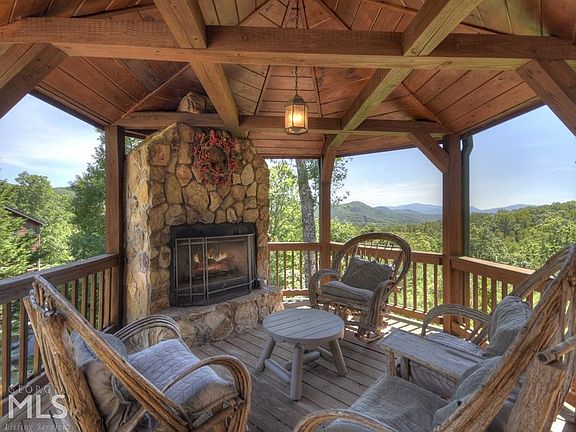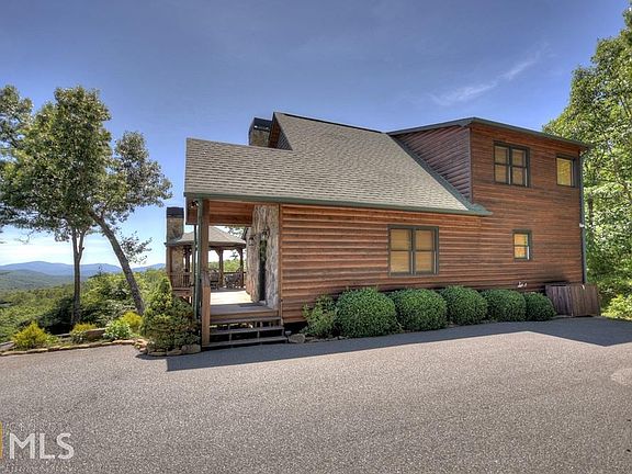 Wow! What a view from this 3/3 cabin with loft plus spacious game room on lower level. Each Bedroom with en suite. Soaring great room with floor to ceiling FP. Attached gazebo with outdoor FP, Hot tub and porch plus lower level deck. Was successful in rental program until removed this past year. Upscale furnishings remain! Located in gated community.
