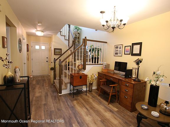 Spacious Townhouse tucked away on quiet cul-de-sac in desirable Fox Chase! Features foyer, formal living room & formal dining room w/ laminate floors, sun drenched eat in kitchen w/ lots of cabinetry, stainless steel appliances, dinette area and sliders out to private patio, 3 generous sized bedrooms, 2 1/2 baths, upstairs laundry area and attached 1 car garage! Master Suite boasts cathedral ceilings, walk in closet & private full bath w/ soaking tub & oversized shower! New hot water heater, neutral decor, gas heat & c-air! Fabulous location, only minutes to parkway, route 18, shopping and beaches! Immaculate condition, move right in!