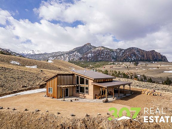 Experience the best of Wyoming living in this stunning new construction home nestled in the heart of the Wapiti Valley. Perched up the Green Creek corridor in Cody’s Country Subdivision, this beautifully crafted 3-bedroom, 2-bathroom home blends modern mountain design with high-end finishes and expansive views in every direction. Step inside to a bright and open-concept living space, where radiant in-floor heat and a cozy wood stove create year-round comfort. The kitchen is a dream—complete with stainless steel appliances, a gas oven/range, a pot filler, custom cabinetry and tile work, and beautiful concrete countertops. Low-maintenance stained concrete floors flow seamlessly throughout the home, complemented by thoughtfully placed LED lighting and generous natural light that together create a warm, inviting atmosphere. The spacious master suite features a walk-in closet and a luxurious en suite bathroom with custom tile work, double vanity, and a spa-like shower. The wraparound covered patio extends the home's living space to the outdoors—perfect for taking in the sweeping views of the Wapiti Valley and nearby public lands. The immense Shoshone National Forest boundary is close by just up the mountain and Yellowstone National Park is just down the road to the west about 30 miles. There is also potential for expansion—ask the listing agent about the option to purchase adjacent lots 201, 202, and/or 204 (not owned by seller) to increase acreage or build your dream garage.