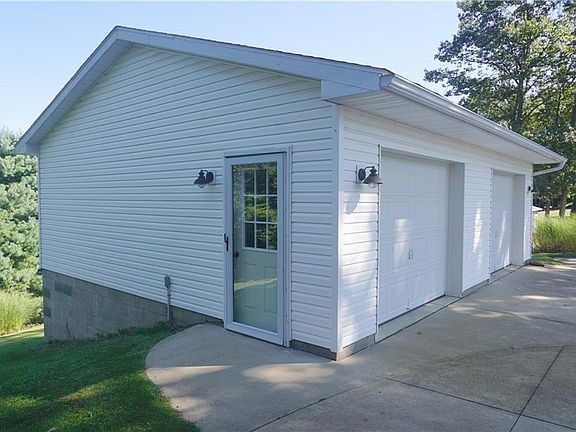 Excellent curb appeal with this three bedroom ranch located in a quiet neighborhood on a private double lot. Large deck from dining area offers wonderful views of country side and woods. Detached 24 x 28 garage along with attached two-car garage has plenty of level concrete driveway for additional parking area. Living room has large picture window and decorative fireplace. Masterbedroom has double closets. Family room has woodburner and a walk out to lower level patio. Also, located next to family room is second full bath. Come and see this well maintained property.