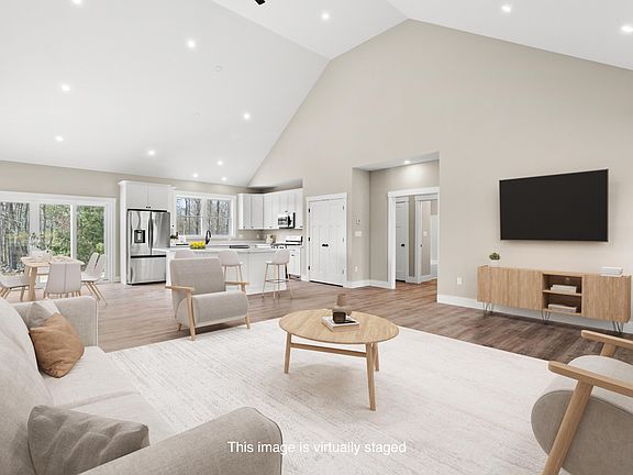 Back on the market after buyer's home sale contingency lapsed. This brand new home is complete and ready to move in for Summer! It is located on a gorgeous new cul-de-sac in a neighborhood of high-end homes. Single floor, low maintenance living. The split floorpan has a Primary Suite on one side of the house and 2 bedrooms and a full bath on the opposite side. The living area, featuring open floorpan kitchen/dining/living room flows seamlessly between the two. You will just LOVE the cathedral ceilings- what a statement! A generous mudroom entrance from the 2 car garage features laundry and lots of storage. The full basement is able to be finished for even more space.