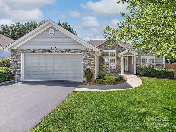 Come enjoy one level living in Crowell Farms. Convenient location only minutes from Asheville shopping & restaurants. Take a walk around the neighborhood and come home to relax on the porch swing & listen to the Koa pond. The beautiful back yard is fenced & has producing blueberry bushes. Inside is a meticulously maintained home with a split bedroom layout. Living room with wood floors, vaulted ceilings & gas fireplace. Kitchens and baths updated in recent years. Primary bedroom suite includes a walk-in closet, two vanities, & walk-in shower. Sunroom can be used as screened porch or pull the blinds for complete privacy (wall mounted TV conveys). Extras include a whole house generator & water filtration. Inspection report provided.