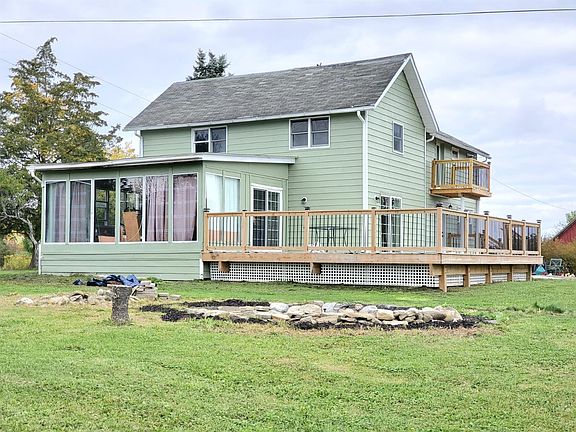 Welcome Home to your beautifully remodeled, 4 bedroom 2 and a half bathroom home with a gorgeous view!!! 5.39 acres that includes a barn, large pond, flower beds, fruit trees and did I mention the view!? Updated kitchen and living room with perfect office space right off the living room. 10 KW Solar System help with keeping your electric costs low, converted main heat to electric with a wood stove in the living room. .Take in the view while relaxing on your balcony upstairs or on your large deck! 3 season sun-room perfect hangout space. Newly installed laundry room and master bedroom with bathroom. 2 bedrooms freshly painted with new carpet. The 4th bathroom is waiting for your touch! Kitchen and dinning room are currently being remodeled will be done in a week or so. Making this home your Home Sweet Home!! Country living at its best minuets to town! This is a must see!
