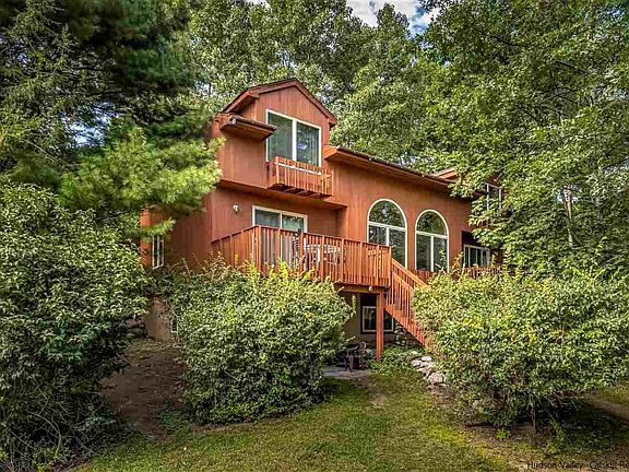 Beautiful contemporary home located in one of the most coveted locations in the area, Sparkling Ridge. Stunning rooms with cathedral ceilings and expansive walls of windows are flooded with sunlight from every angle. The first floor great room has gleaming hardwood floors and a natural stone fireplace for those cozy winter nights. Private first floor bedroom with its own balcony is versatile. Guest room, den, home office. Second floor master suite with bath and two additional bedrooms with open loft overlooking the great room, private back deck and inground pool area. Large lower level is finished with a family room, two additional rooms and sliders to back patio which is just steps away from the heated saline pool, hot tub and barbeque area.It also has a small kitchen and is currently being used as a separate two bedroom apartment. Life in the country. Pool, hot tub, beautiful fireplace and lots of room for friends and family! The property is a nature lovers dream! World class rock climbing and hiking right outside your door! Sparkling Ridge is a community of quintessential mountain homes nestled amongst the Shawangunk Ridge and surrounded by 30,000 acres of forever protected land, Mohonk Preserve. The Jewel of the Hudson Valley. Located just 10 minutes outside of the Village of New Paltz and 90 minutes to Manhattan.