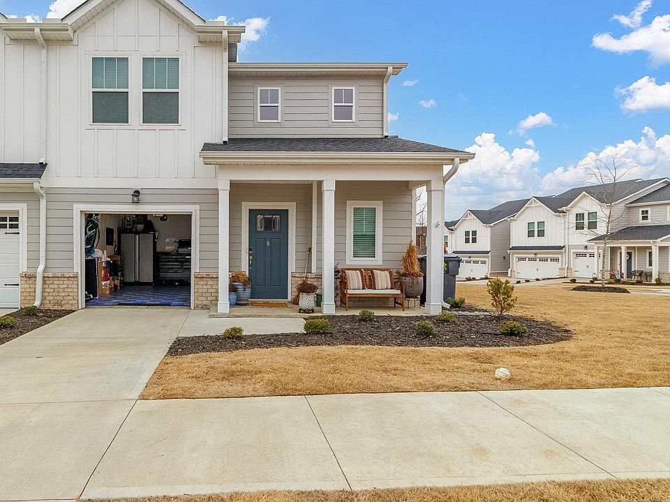 Come take a look at this luxury townhome!! Price recently reduced! Motivated seller!!! Built in 2023, this spacious and energy-efficient townhome in the coveted Village at Chapel Green subdivision is now available at an unbeatable price. With 1,798 sq ft of living space, this home offers both comfort and style. Step into luxury with the Crystal plan by Meritage Homes, renowned for its sophistication and quality craftsmanship. The interior features umber cabinets that bring a warmth to the home, complemented by sleek white quartz countertops throughout the kitchen. Entertain with ease in the large great room, complete with a cozy fireplace, perfect for gatherings with friends and family. Natural light floods the dining area and great room, creating a welcoming ambiance throughout the lower level. Retreat to the main level master bedroom, boasting a generously sized walk-in closet and double sink vanity. Upstairs, discover a versatile loft space, ideal for a home office or relaxation area. The upstairs guest bedrooms offer ample space and storage, accompanied by a full bathroom conveniently located in the hallway. Situated on one of the largest lots in the subdivision, this corner unit provides plenty of outdoor space for enjoyment and relaxation. Option to put up fence is permitted. Nestled in a quiet area away from the main road, this home offers a peaceful retreat while still being close to all the action. Enjoy easy access to dining, shopping, and entertainment options, with downtown Greenville and major shopping districts just a short drive away. Priced to sell, this townhome won't last long! Schedule a viewing today and discover your new home in Village at Chapel Green.