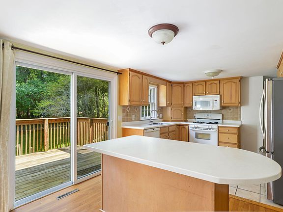 Located in desirable Lakewood Hills, in East Sandwich which features a beautiful pond for swimming, fishing, boating within walking distance of this lovely 4 bedroom 3 bath cape. The large kitchen/dining area features maple cabinetry, a center island, also a built in desk with additional storage. A four panel window and extra large slider bring is a lot of light. Living room has fireplace, hardwood. Two first floor bedrooms and a full bath complete the main part of the house. There are 2 bedrooms and a bath on the second floor. A bonus room which could have multi functions as a large primary suite or in-law suite or once provided space for a day care business. The finished walkout basement leads you to a large fenced back yard. Mature plantings create privacy on the 3/4 acre fenced lot. This house needs TLC but well worth your effort in the subdivision.