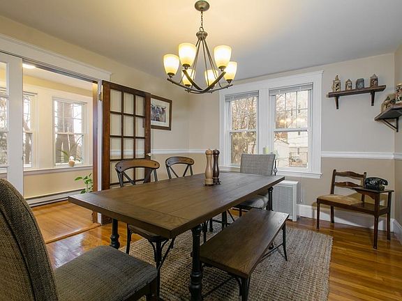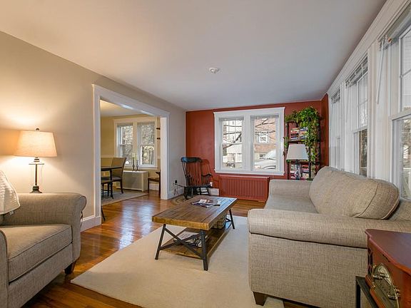 Perched on a hill w/sweeping views, this lovely bungalow has an inviting front porch and lovely yard. Kitchen features granite counters, glass tile backsplash, ss Kenmore Elite appliances (including 5-burner gas stove and convection oven), white cabinets, recessed lights, and huge picture window above sink overlooking yard. Dining alcove off kitchen has bow windows overlooking backyard and door to side yard. To right of kitchen, DR has a chair rail and windows, w/double French doors to office/studio flanked by windows overlooking yard. Half bath w/pedestal sink off office. Top fl has full tiled bath w/linen closet, master bedroom w/walk-in closet and attic access, and 2 bedrooms w/big closets. Wood fl throughout, except baths. Basement has finished playroom, w/d, and separate utility/storage area. Additional exterior storage beneath front porch and by side yard. Parking front of property on recently paved (2018) private way. Steps to Mass. Ave. bus, shops, bike path. Nr parks, Rt. 2.