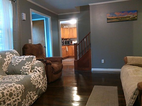 Cute and cozy Cape perched on very nice 1.1 acre lot surrounded by trees with private country feeling yet has village water and septic. This 3-bedroom, 1-bath home has received many upgrades in the past 10 years including siding, arch roof, forced air heat/central air, exterior replacement windows, and deck. Recently the kitchen has been remodeled, new electric service, painted throughout, hardwood floors refinished, and more. The bright kitchen has all new appliances, maple cabinets, and island eating center. The living room has a lovely wide window, a front entry foyer and open stairway. A bedroom, bath, and good sized laundry completes the first floor. The 2nd and 3rd bedrooms are upstairs. Such a special setting with option to purchase 3 additional acres bounding the woods.