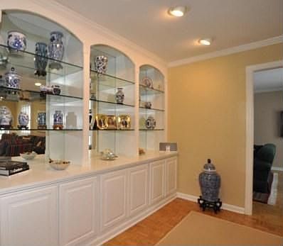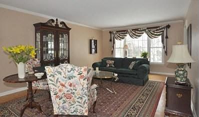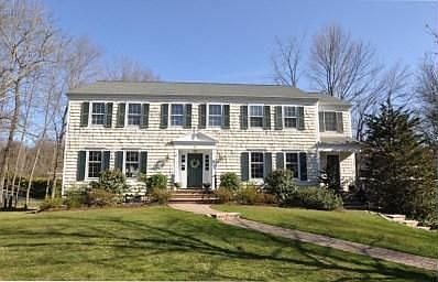 This lovely cul-de-sac Colonial is pleasing right from the moment you step inside. The spacious entry foyer welcomes you into this light-filled home, complete with hardwood floors, beautiful moldings, and light-filled spaces. The foyer leads to both the gracious front-to-back living room, which features a large picture window with views to the yard and to the formal dining room. The bright and airy kitchen and adjacent breakfast area are beautifully finished, featuring granite countertops, undermount stainless double sink, cooktop, built-in refrigerator, and ample cabinet and counter space. The breakfast area also includes two built-in glass-front cabinets, and access to the deck and yard below. Off of the breakfast room is a mudroom, with two closets, laundry area, and granite countertops and cabinetry that match the kitchen; plus an additional entrance from the front of the home. Both the kitchen and living room lead to a spectacular family room, with charming arched windows flanking the gas fireplace on one end, and built-in cabinetry, perfect for both display and storage, at the other end. Sunlight streams in through the French door, which leads to the deck. A charming powder room, complete with gold leaf ceiling, finishes the first floor. Upstairs, the beautiful master suite is the perfect retreat, and includes the master bedroom, separate sitting room, custom walk-in closet, and master bath. The master bath features a vaulted ceiling, jetted tub, walk-in shower with bench, his and her vanities, and private commode. There are three additional bedrooms on the second floor—one ensuite—each with generous closets and ceiling fans; plus a renovated hall bath, linen closet, and Bessler stairs to the attic. The finished lower level features a large recreation room, high ceilings, storage area, walk-out to yard, and access to two-car garage. Pristine and turn-key, this lovely home is not to be missed!