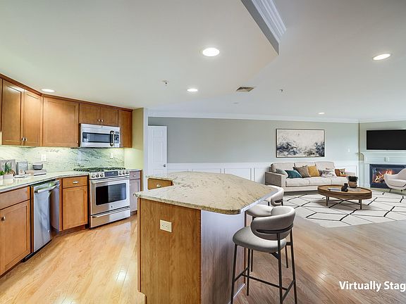 A beautiful 2 bedroom 2 bath luxury condo located in desirable Village at Sterling Hill and is located on the third floor and faces the back of the building with pretty view and privacy. Enter from the elevator into #635 and you will see gleaming hardwood floors, central air, custom crown moldings and a large window overlooking trees. The kitchen features a large granite island, upgraded stainless steel appliances and soft close cabinets. The flow into the dining area and living room is an open concept feeling with a gas fireplace and doorway to private deck overlooking pretty backyard. Primary bedroom offers carpet, large closet space, bathroom with tiled floors, double vanity with granite and an oversized walk in shower. Second bedroom with hardwood, French Door, large window, closet is located off the kitchen and could be used as an office or den. The guest bath has tiled flooring, bathtub and granite vanity. The laundry is conveniently located in the condo in the large utility room. Secure entrance with elevator and assigned parking in heated garage with an assigned storage area. The Village at Sterling Hill also offers a clubhouse with living rooms, gas fireplaces, bathrooms, kitchen, pool table, patio for grilling and gym. Enjoy the lifestyle at this 55+ community close to downtown Exeter, hospitals and the Seacoast.