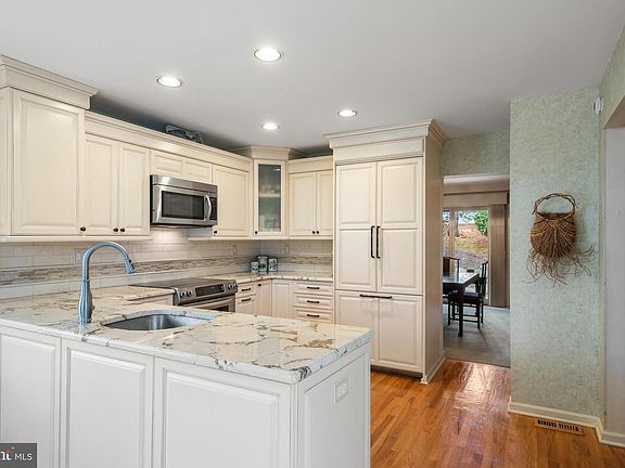 Welcome to 6 Stirling Court, a magnificently appointed home in the wonderful Knoxbridge neighborhood of beautiful Chesterbrook. This home has been beautifully renovated and meticulously maintained. An absolutely stunning home is a fantastic location within the Tredyffrin-Easttown School District. The dramatic two-story entrance foyer offers a turned staircase with upgraded railings and balusters. The heart of the home is the breathtaking gourmet kitchen featuring absolute top of the line granite countertops, raised panel and display cabinetry, a beautifully designed tile backsplash and high end stainless steel appliances. The nicely sized dining area off the kitchen offers sliding glass doors to the front patio area which is surrounded by handsome brick privacy walls. The kitchen and dining area are flooded with extra light thanks to a fabulous garden window. The open concept great room features a vaulted ceiling with a dramatic floor to ceiling stone fireplace with raised hearth. The fireplace is flanked by walls of windows which provide great natural sunlight and offer nice views of the rear plantings. Sliding glass doors off of the adjacent living room lead to one of the two rear patios. The dining room is open to the great room and has its own set of sliding glass doors leading to a covered rear patio. A beautifully designed powder room completes the picture for the first floor of this very special home. The upper hallway overlooks the great room and is naturally lit by a large glass transom. The sumptuous owners suite offers a walk-in closet, a double closet and a doorway to a wonderful second level deck. The incredible main bathroom features a double size shower with custom tile and stone accents, a sitting area, built in tile shelving and a seamless glass door and surround. The stone accents continue on the wall above the double vanity. This is a breathtakingly beautiful room. The charming second bedroom features a beautiful floor composed of repurposed antique pine. The third bedroom currently serves as a den/home office. A full hall bathroom services bedrooms 2 and 3. The spacious basement provides tremendous storage space and offers endless possibilities. The garage features a storage area with built-in oak cabinets and a work counter. The rear grounds of the home have been enhanced by the current owners with a fieldstone walkway and a lovely rock garden. This home offers four distinct outdoor spaces: two rear patios, an owner's suite deck and the front patio with brick privacy walls. The patios are the ideal spots for outdoor entertaining, relaxing, grilling and dining al fresco. Hardwood floors, recessed lighting, glass transoms, ceiling fans, chair railing and crown molding, an open floor plan , vaulted ceilings and countless high end upgrades all combine to make 6 Stirling Court a very special place to call home. This is a picture perfect home in a fantastic setting. Located close to the shops, corporate centers and trains of the Main Line, Wegmans, Lifetime Fitness and a short stroll to the Chesterbrook Shopping Center, Trader Joes, Starbucks, the Gateway Shopping Center and Wilson Park. This is the one. Welcome home.
