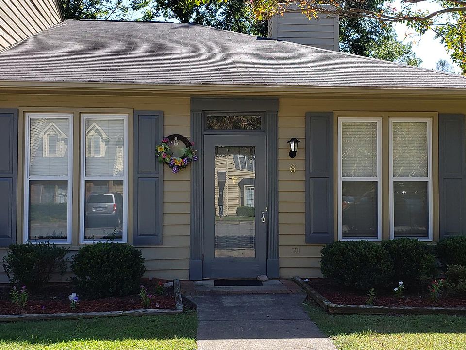 1-Level (No Stairs) / End-Unit Townhouse in the Stonewall Village Community of North Durham off Horton Road near Duke Street - conveniently located near transportation, food... everything! Park out front in one of the two dedicated spaces, and enter into the large Livingroom w/Fireplace and Dining Room (at left) with opening into Kitchen behind. Walk down the hall to the first full bath (at left), then two of three Bedrooms (at right) each with fans and plantation-style blinds - with the main / third Bedroom at the end of the hall (at left)) having the second full bath. Plenty of storage and large closets. Washer & Dryer in hall closet opposite Bedrooms. A side door off the Livingroom (with doggy door) leads to a fenced private side-yard barbeque area. Make ready still underway for mid-November occupancy. No Smoking.