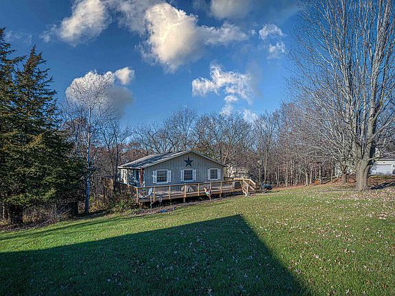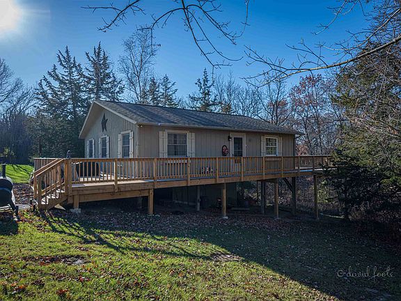 Light and bright country retreat sited on .69 lot with wooded backdrop on beautiful Stony Point in the heart of The Galena Territory with great deck area for outdoor entertaining, gorgeous, wooded backdrop, and large rear-sloping yard. Open and airy floor plan offers main level living with large dining area, galley kitchen with island seating, bay window with window seat, living area with corner gas fireplace, spacious master bedroom convenient to nicely appointed full bath, two additional guest bedrooms with well-adorned shared bath, and laundry closet. Outdoor areas include expansive rear deck that has been updated with more area added to wrap around the front of the home and provide a wonderful place to take in nature on either side. Nicely sized unfinished storage/utility area with door access from rear. Sold furnished with some exclusions and to be transferred via separate bill of sale. Truly a warm and inviting home.