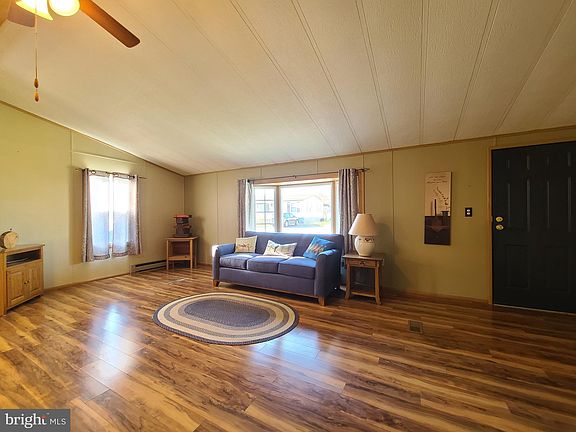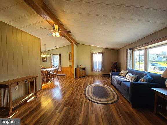 Updated mobile home in desirable 55+ Stony Run Village. Enjoy the open concept of the living room, dining area and kitchen. This home features a primary bedroom with walk-in closet and full bath along with a second bedroom and full bath, laundry room and tons of storage all within convenient one floor living. Outside there is a screened-in deck, which overlooks the private backyard. Shed for extra storage and a covered front porch. Home has replacement windows throughout, central air, and electric baseboard heat. Affordable monthly lot rent of $365 covers water, sewer and trash. Call to schedule your showing today!
