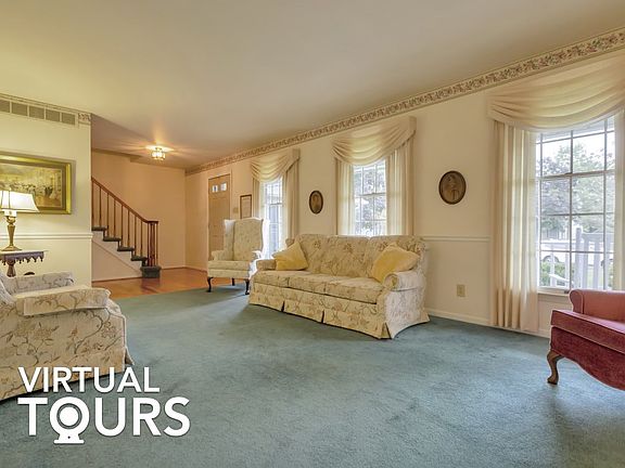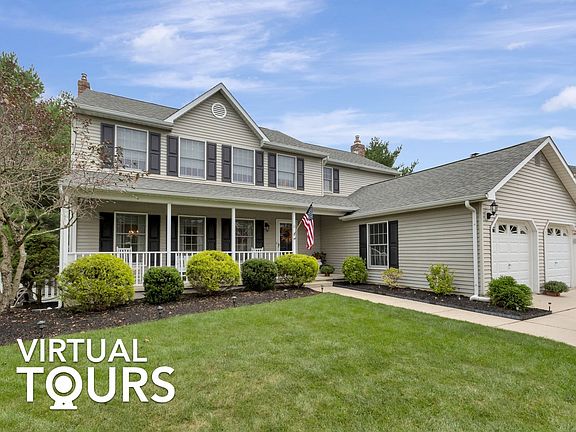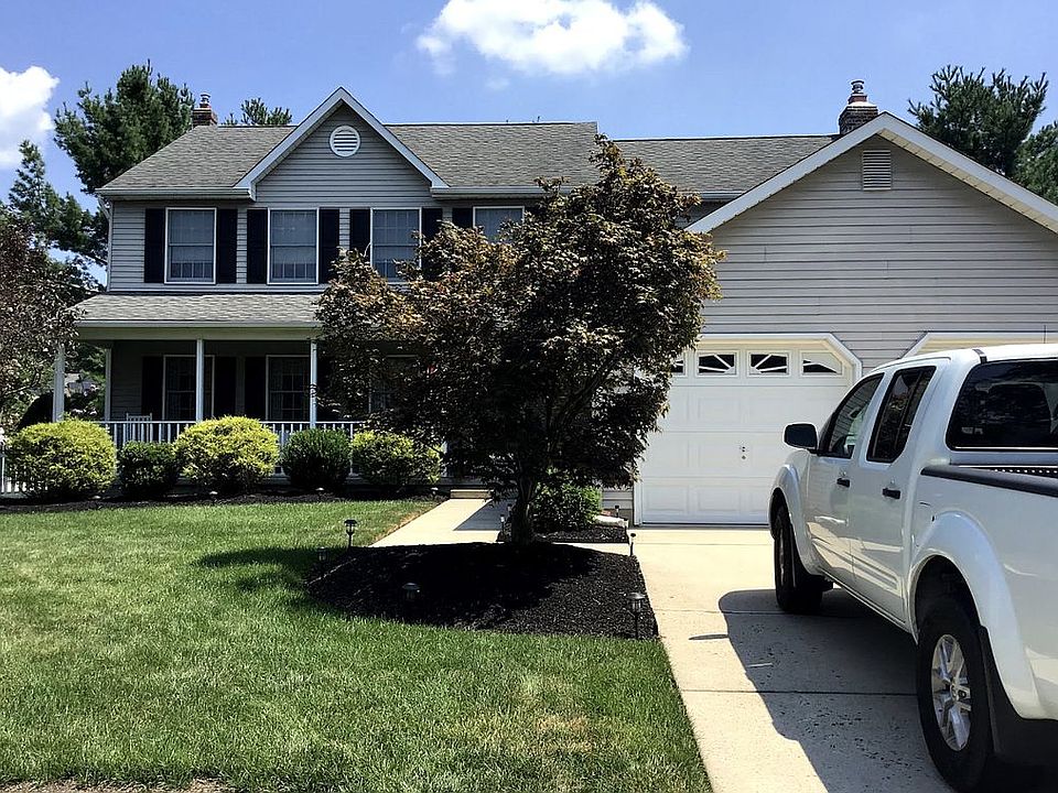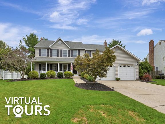 Located near McGuire Air Force Base, this turnkey 4 bd / 2.5 ba is the perfect off-base military home! Situated on a quiet street with only 11 houses on it, this 2540 sq ft home features a large private backyard, wood deck, and finished basement! Notice the covered front porch and well-maintained landscaping at the front of the house. Inside, you'll see wood/carpet flooring, white walls, estate shutters, and natural light that's creating a bright and airy environment. An elegant living room, with chair rail molding and large windows, is to the left of the foyer and opens to the chandelier lit dining room. Flow into the kitchen, equipped with granite countertops, stainless steel appliances, crisp white cabinets, and a breakfast nook with a bay window. The second living room sits ahead and has a floor-to-ceiling brick fireplace and access to the patio through Andersen french doors. The primary suite is located upstairs and contains a vaulted ceiling and bath with skylights and a dual sink vanity. Both the primary and hallway bath have been updated to include new flooring, cabinets, mirrors, toilets, and fixtures! The two additional bedrooms are spacious and wood floored. Head down to the basement for a laundry room, storage, and open space for an office, gym, and/or media room! A powder room and attic complete the interior. Entertain on the large wooden deck overlooking the tranquil trees! The lawn space below features mature trees/bushes and plenty of space to roam and customize. Lennox signature series. Central A/C and Forced Air heating. Located in the desirable Section 2 of the Carriage Park Development that is protected by wetlands! Near parks, restaurants, and shopping! Buyer should verify all information.