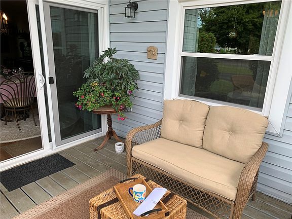 WELCOME to 6 Strawberry Lane in the desirable BLUEBERRY HILL Community for 55+ homeowners! This charming patio home has an easy living ONE LEVEL floor plan with an OPEN CONCEPT Living/Dining/Kitchen area. The cheerful and sunny Dining Room opens to a delightful OUTDOOR PATIO surrounded by the most beautiful plants and flowers and room for a generous sized seating arrangement! The MASTER BEDROOM enjoys an ensuite BATHROOM with a WALK IN SHOWER. The home has been tastefully updated throughout. RECENT UPDATES Include:"SLATE" Colored Stainless Steel KITCHEN APPLIANCES, LUXURY VINYL Flooring, ALL NEW WINDOWS & exterior DOORS, NEW ROOF (2023), Newer FURNACE, AC, Water Heater and New SINKS & CABINETS in BOTH BATHROOMS. "The Barn" Community Center is a great space for community activities and can be rented by residents for personal use. The HOA includes exterior maintenance (roof & siding), lawn care, snow removal and trash removal. This lovely home is waiting for YOU!