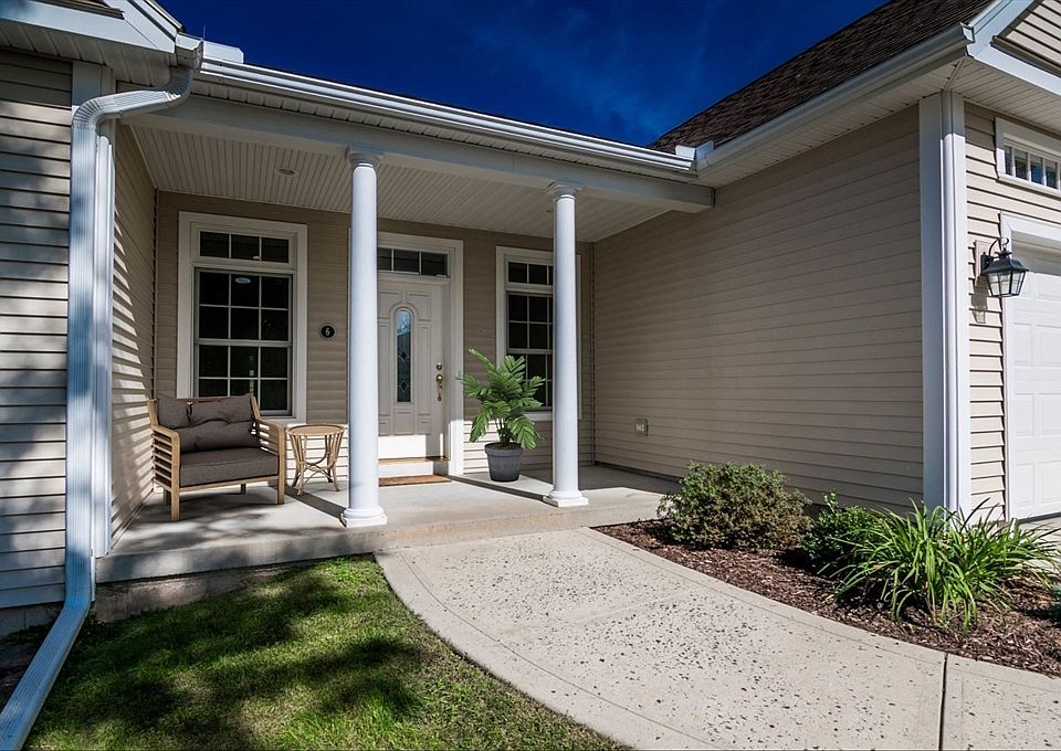 Your in Luck....................Buyer Got cold feet !..........EXCEPTIONAL...............One owner unit at STRONG FARM. Easy one floor living with custom details throughout. Boasting beautiful hardwood floors, crown molding, french doors with transom detail and recessed lighting along with double sided gas fireplace in the living area into the den. The dining room has wainscoting and tray ceiling. The Custom kitchen with center island is equipped with all GE Profile appliances, granite counters and high end cabinetry that connects to the laundry. The large primary bedroom has a walk-in closet and in suite bath. The second bedroom has its own full bath as well. Huge basement for additional living space and storage. This small 17 unit complex is a hidden gem with many amenities near by. Enjoy golf, boating, hiking and The Commons for dining all within minutes.