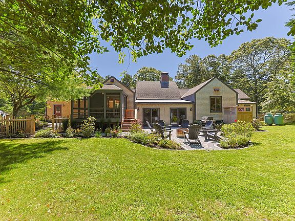 This exquisite ranch-style residence features 3-4 bedrooms combines timeless charm with classic luxury. The kitchen, a haven for entertainers, boasts new Wolf appliances, incl. a double oven, gas cooktop, dual sinks, and dishwashers. Elegant hardwood floors extend throughout the dining and living areas, as well as in all bedrooms, imparting a sense of warmth and sophistication.Experience tranquil evenings by the expertly crafted wood-burning fireplace, reminiscent of the 1700s, which serves as a true centerpiece of the home. The layout includes 2-3 bedrooms on the main level, complemented by a unique retreat on the second floor. Alongside the formal living room step down to a spacious great room equipped with two sliding doors that lead directly to your private, fenced backyard, showcasing beautifully landscaped hardscape and perennial gardens, ideal for sunbathing not to mention the all-important new outside shower. Other features include a 2-car garage, central air conditioning, a generator, and an irrigation system, ensuring both convenience and comfort. This residence represents a unique fusion of historical charm and modern enhancement
