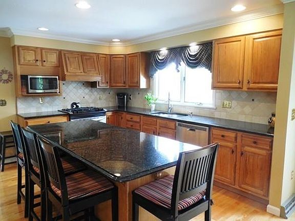 IT'S LIKE BEING ON VACATION!! A view from most rooms, in-ground heated pool, dead end cul de sac, great yard for kids to play. Come see this stunning nine room Cape, with open floor plan. Family room with gas fireplace, open to kitchen both with hardwood floors, entry to sun room overlooking landscaped yard, mountain views, and pool. Kitchen has custom Hickory cabinets, granite counter tops, tumbled stone back splash and center island great for a quick meal. Gracious dining rm., bay window, crown molding,w/w carpet beautiful views, Lg, formal living room, crown molding, w/w carpet, views.Laundry with chute and half bath on 1st fl., also home office which could be 4th bedroom. Lg. master suite on 2nd fl., new w/w carpet, full bath with separate shower, jacuzzi tub. Two other bedrooms with w/w carpet, double closets, one with access to more storage. Enjoy the rec. rm. with pool table, gas stove and lots of space for other activities & lg.storage area. Over sized 2 car garage, openers