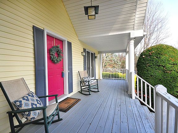 Nestled on a quiet cul de sac in a neighborhood of gorgeous homes, this pristine Colonial is the one you've been waiting for! The expanded front porch welcomes you home and provides a great outdoor living area where you can enjoy your coffee in the early morning sunlight or relax on your rocker with a good book at the end of the day. There's even room to add a classic porch swing! Step inside and you'll instantly feel at home in the spacious living room with sunny eastern exposure, 9' ceilings, beautiful hardwood floors & custom fireplace mantle. The dining room is perfect for entertaining with friends & family and both rooms feature French doors to expand your living space and allow tons of natural light! The sparkling kitchen features handmade cherry cabinetry with leaded glass, recessed lighting and a roomy pantry closet in the hallway. Upstairs there are 2 good size bedrooms and a large master suite with palladium windows, walk in closet and large master bath. There's also a convenient 2nd floor laundry closet. The lower level can be easily finished to create additonal living space. Other features include central A/C, 2-car attached garage, vinyl siding, a complete water filtration system and a lovely 1+ acre landscaped yard with beautiful perennials along the stone wall. This one owner home has been meticulously maintained! Come live the good life in Burlington and enjoy quiet, country living in this highly rated, centrally located small town!