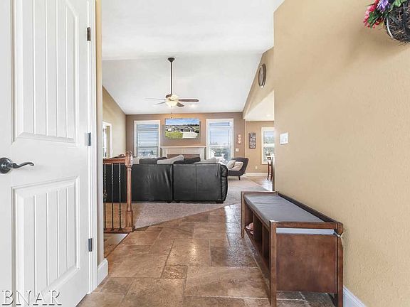 Gorgeous brick with limestone accent front, walk-out ranch home located on a quiet cul-de-sac in the Grove of Kickapoo. This spacious 4 bedrooms, 3 bath home offers an open floor plan with generous rooms sizes. Looking for storage and space this kitchen offers both as well as stainless steel appliances, an oversized island with built in sink and a pantry. Main floor master is located off the family room with french doors, walk-in closet with organizers. The master bath offers granite countertop, shower and jacuzzi tub. The finished lower level offers an large family room great for entertaining, and a fourth bedroom with a bath. This home boasts 90% efficiency heat, A/C and water, central vacuum system roughed-in, home audio system and a large, stamped patio with a built in firepit along with a screened-in porch. It's a must see home!