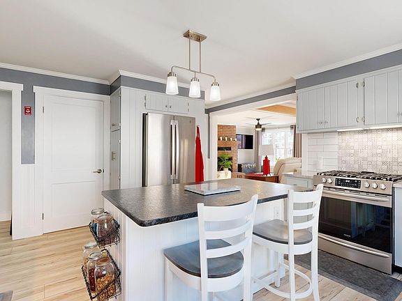 Enjoy the cozy ambiance of a brand-new gas insert, and a beautifully updated kitchen equipped with new appliances, including a natural gas range with convection oven. The large granite kitchen island provides plenty of prep space, while the generous counter space makes cooking and entertaining a breeze.
