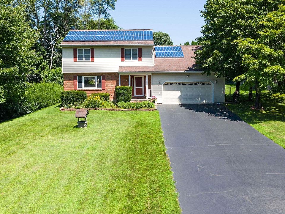 This nicely updated Colonial is located in a quiet and conveniently situated neighborhood. With a contemporary open floor plan that makes day to day living easy, the rooms are spacious and comfortable. Updated mechanicals and a newer roof mean the big ticket projects have been done and lots of cosmetic upgrades have been completed as well. Leased solar panels keep the utility bills low. A large sunny yard is home to a new above ground pool and deck, making it a great place to relax on summer days. What a comfortable place to call home!