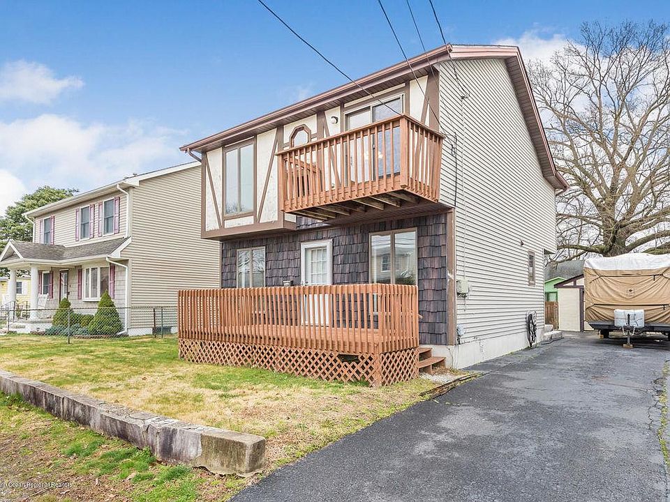 Expanded Cape in Hazlet Township. This two bedroom, two full bath has endless potential. Can be converted to a three, or possible four bedroom home. Large eat-in kitchen and outdoor decks for entertaining. Detached garage for added parking, or a great work space. Close to the beach, GSP, Ferry, Train, and Bus.