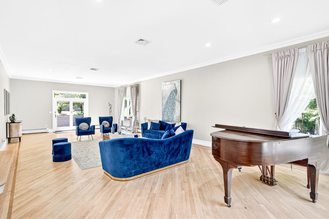 Imagine waking up in your own private paradise! This stunning home boasts over 6,400 sq feet of living space, nestled on almost 2 acres of beautifully landscaped property. As you step inside, you'll be greeted by the elegance of a double-story entry with large Italian flooring and a sweeping bridal staircase. With 5 bedrooms and 5 1/2 remodeled bathrooms, this updated home is the epitome of luxury. Entertain in style in your large formal dining room with crown moulding, or relax in your living room with beautiful, long stained glass windows and a cozy black marble, wood-burning fireplace. The chef's kitchen is a culinary dream come true, complete with commercial-grade stainless appliances, granite countertops, a spacious center island, and a spiral staircase. Enjoy watching TV in the large sunken family room with hard wood floors. Additional highlights include a first-floor bedroom, and 1 1/2 bathrooms downstairs. Upstairs has 4 large bedrooms including 2 bedroom suites. There's also a full finished walk out basement with a full kitchen, bathroom and 2 addition rooms. The outdoor oasis is perfect for entertaining, featuring an in-ground pool, outdoor kitchen, fire pit and large decking with pergola. Extras include recess lighting, central air conditioning, alarm system, walk in closets, 3 car garage, circular driveway and much more! With its prime location, you'll enjoy easy access to Palisades Interstate Parkway, golf, marinas, lakes, hiking trails, and more, all just 45 minutes to NYC, or enjoy taking the ferry to Ossining. A MUST SEE!