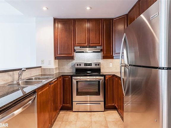 Views of kempenfelt bayPrivate balconyBright open-concept layoutWell-equipped kitchenStainless steel appliancesTiled backsplashTile flooring