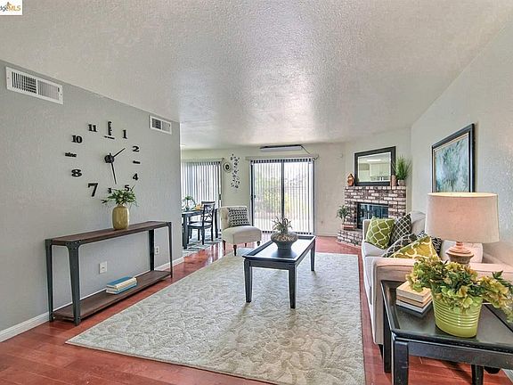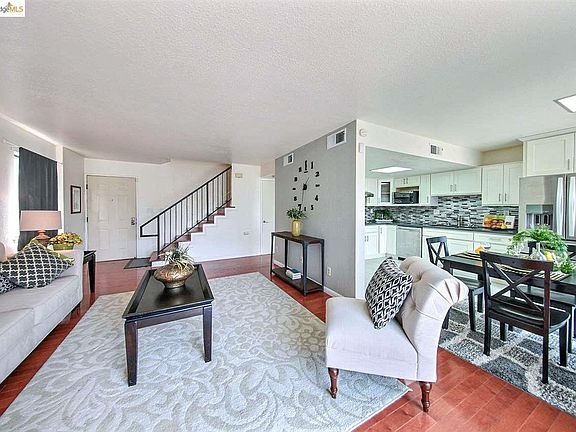 Beautiful 3BD/2.5BA townhome located in a private gated community. The living room features 3/4 inch solid hardwood flooring and an authentic wood-burning fireplace. The open kitchen and dining room have been upgraded with modern cabinets, stainless steel appliances, electric stove top and glass mosaic ice backsplash. The main level glows with light from the two sliding doors that opens out to the backyard and shed. The second level features spacious bedrooms, recently updated bathrooms and a laundry room. The master suite has a walk-in closet and dual vanities. The attached two car garage provides parking and storage. This property has easy access to freeways, public transportation and the Oakland Airport.